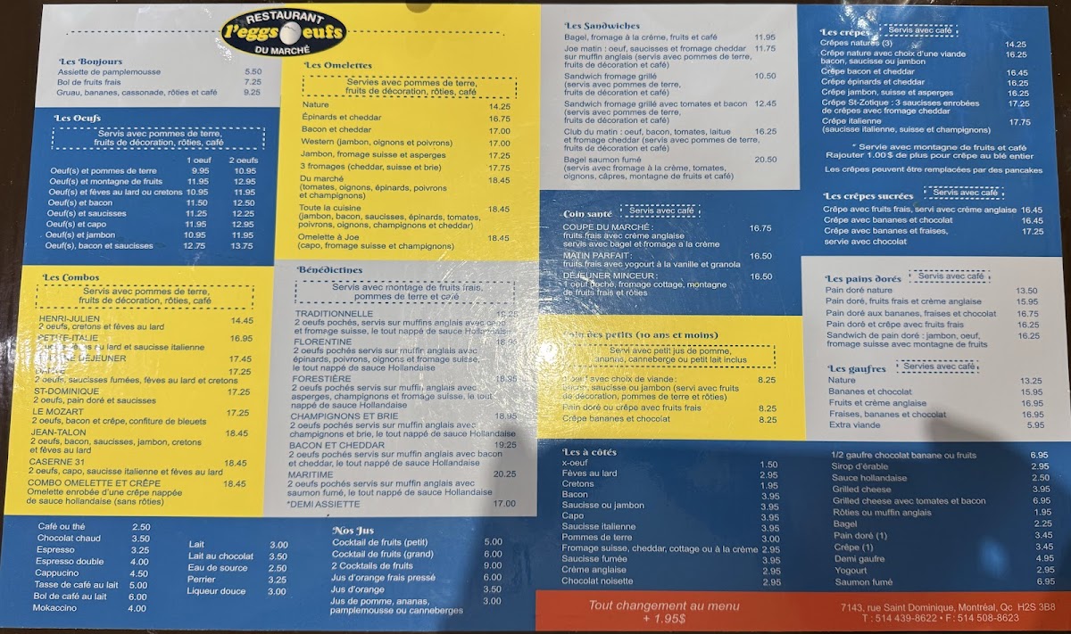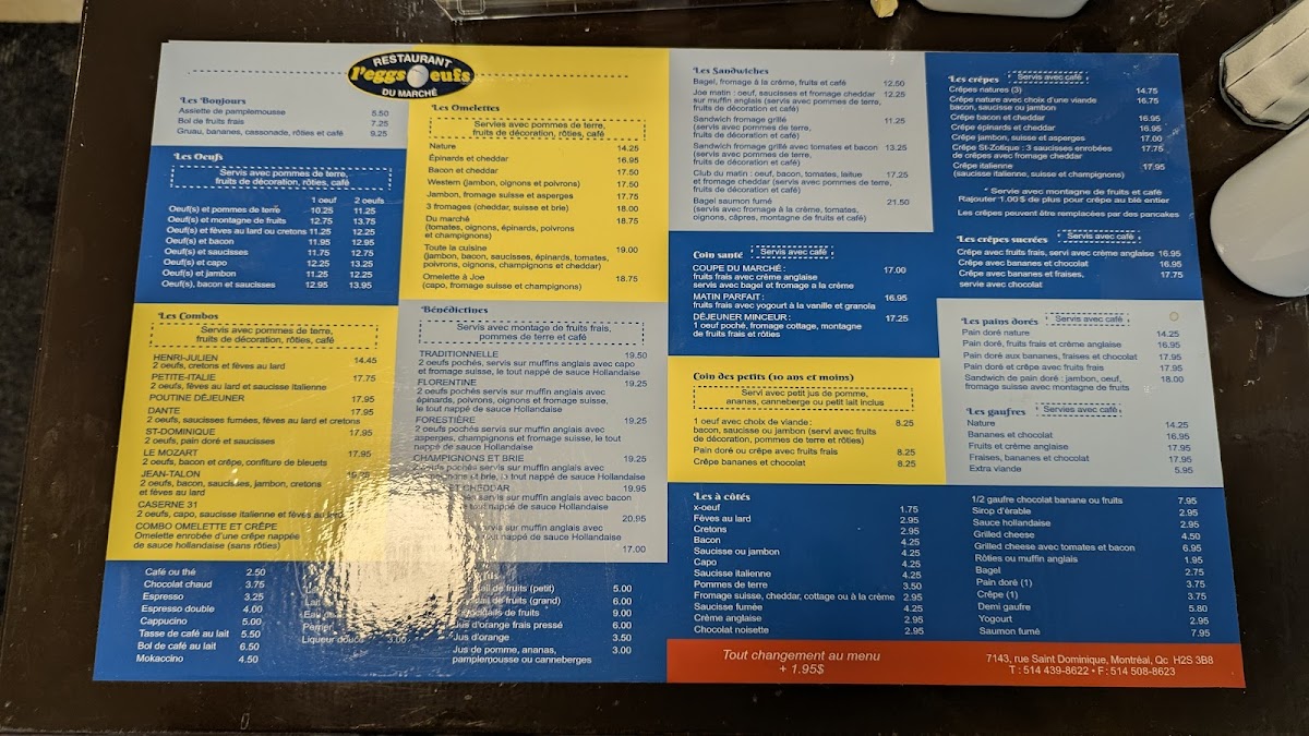 At L'Eggs Oeufs du marché, we pride ourselves on offering a mouthwatering menu of breakfast favorites that will have you coming back for more. From our traditional Eggs Benedict with Mushrooms to our delectable Banana and Chocolate Crepe, each dish is prepared with love and care to ensure a truly satisfying dining experience. Don't miss out on our signature dishes like the Benedictine, Smoothie, Crepes, Poutine Dejeuner, Omlette, Wheat Toast, and Egg with Sausage. Whether you're craving something classic or looking to mix it up with unique flavors, we have something for everyone at L'Eggs Oeufs du marché. Visit us at 7143 Saint Dominique St., Montreal, Quebec H2R 1S3, Canada to enjoy a breakfast like no other.